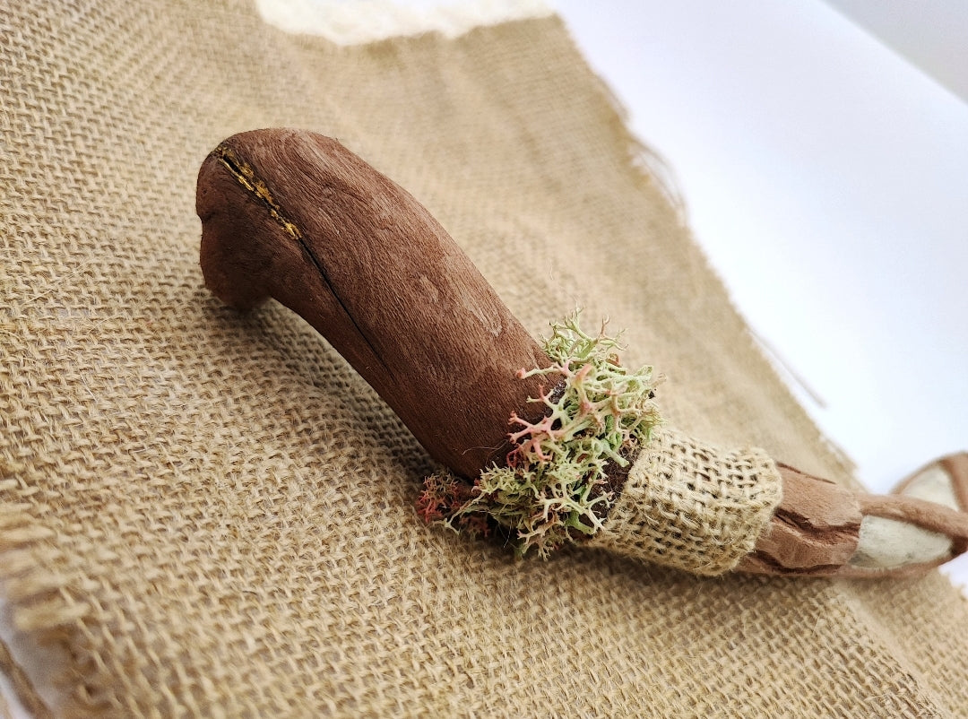 A one of a kind magic wand, made from foraged driftwood. Handcarved with intricate details to enhance the imagination.